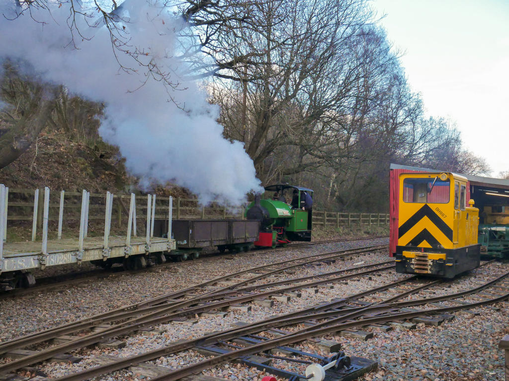 With Christmas and Santa activities out of the way, they’re having a “Winter Warmer” event at Apedale - four locomotives in steam, alternating between passenger and freight movements up and down the line from Silverdale station to Apedale Road, along with the odd rake of rattling and rumbling wagons out onto the field railway.In steam today, in no particular order, are Stanhope (Kerr Stuart 2395 of 1917), Ogwen (Avonside 2066 of 1933), Woto (Bagnall 2133 of 1924) and O&K 5662 (of 1912) - complete with its dinky little tender. Plenty of variety!The weather was better than expected too - plenty of sunshine for the first hour or so - and dry. Eventually I’d seen a bit of